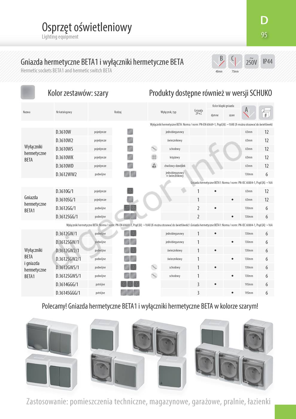 BETA1 2-Zásuvka ŠEDÁ IP44 povrchová, 2x2P+PE, D.3612SGG/1 Veľký uhol vyklápania viečka - menej poškodení v priemysle. Zásuvky sú medzi sebou prepojené z výroby. Ceny pre investičné projekty sa stanovujú na základe množstva a môžu byť výrazne odlišné. Prices for the investment projects are determined on the base of the business case volume and might be significantly different. Inštaláciu a zapojenie môže vykonávať len kvalifikovaný elektrotechnik. Installation and connection can be performed only by a qualified electrician. ***Are you a Company, Institution or Trader? Let us to set up Your prices!*** Tel.: +421-903/430803, elmat@elmat.sk ***Ste Firma, Inštitúcia, alebo Obchodník? Dajte si nastaviť Vaše ceny!*** Tel.: +421-903/430803, elmat@elmat.sk