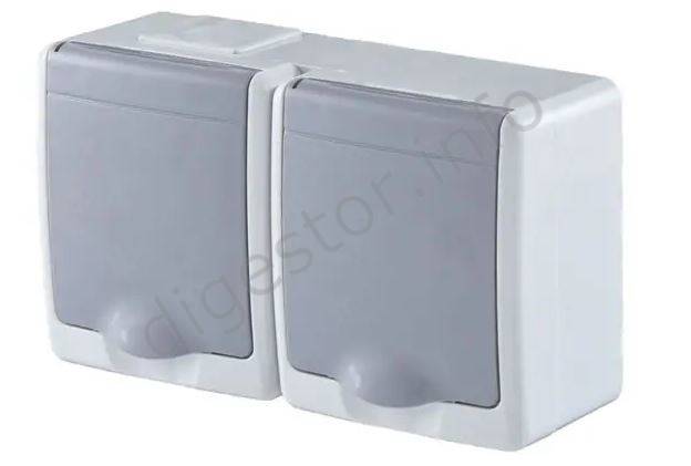 BETA1 2-Zásuvka ŠEDÁ IP44 povrchová, 2x2P+PE, D.3612SGG/1