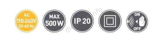Bezdotykový Vstavný Senzor pohybu RUČNÝ IR 230V 5A 500/200W* 2m vodiče IP20 Bezdotykový mód Napájanie 230V Zataženie: Klasické žiarovky max. 500W Úsporky, LEDky max. 200W Dosah 5-6cm (zapína sa mávnutím ruky) IP 20 Ochrana 3-tieho stupňa Dĺžka kábla 2m Ceny pre investičné projekty sa stanovujú na základe množstva a môžu byť výrazne odlišné. Inštaláciu a zapojenie môže vykonávať len kvalifikovaný elektrotechnik. ***Ste Firma, Inštitúcia, alebo Obchodník? Dajte si nastaviť Vaše ceny!*** Tel.: +421-903/430803, elmat@elmat.sk Pozn.: Priemerná životnosť svetelného zdroja je priemer životností svetelných zdrojov v danej svetelnej sústave (skupine svietidiel a zdrojov). Uvedením priemernej životnosti sa definuje doba, za ktorú skončí životnosť (zlyhá) 50% svetelných zdrojov danej svetelnej sústavy. Popisy, technické špecifikácie a preklady © ELMAT SLOVAKIA s.r.o. Prices for the investment projects are determined on the base of the business case volume and might be significantly different. Installation and connection can be performed only by a qualified electrician. ***Are you a Company, Institution or Trader? Let us to set up Your prices!*** Tel.: +421-903/430803, elmat@elmat.sk Note: The average life of a light source is the average life of the light sources in a given lighting system (group of lamps and sources). The indication of the average lifetime defines the time for what 50% of the light sources of a given lighting system ends (fails). Descriptions, technical specifications and translations © ELMAT SLOVAKIA s.r.o.