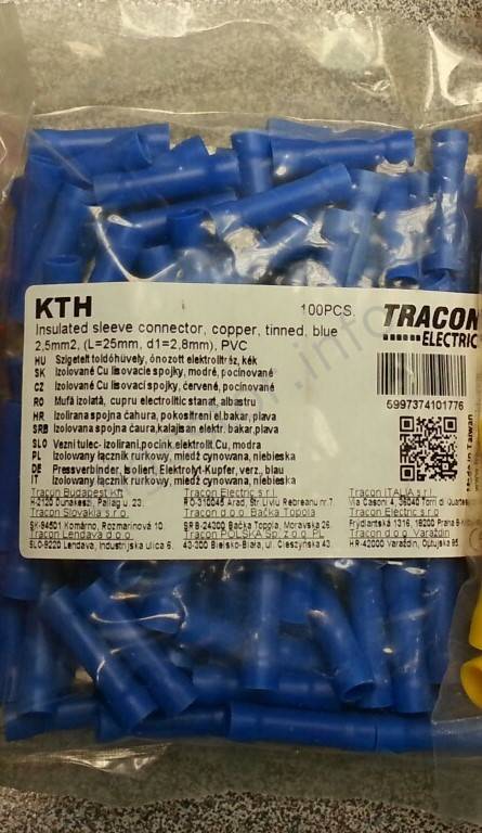 Dutinka SPOJKA KTH Modrá 2.5mm2 (4mm2) izolovaná, L=25/2.7mm, Cu+Sn/PVC, lisovacia