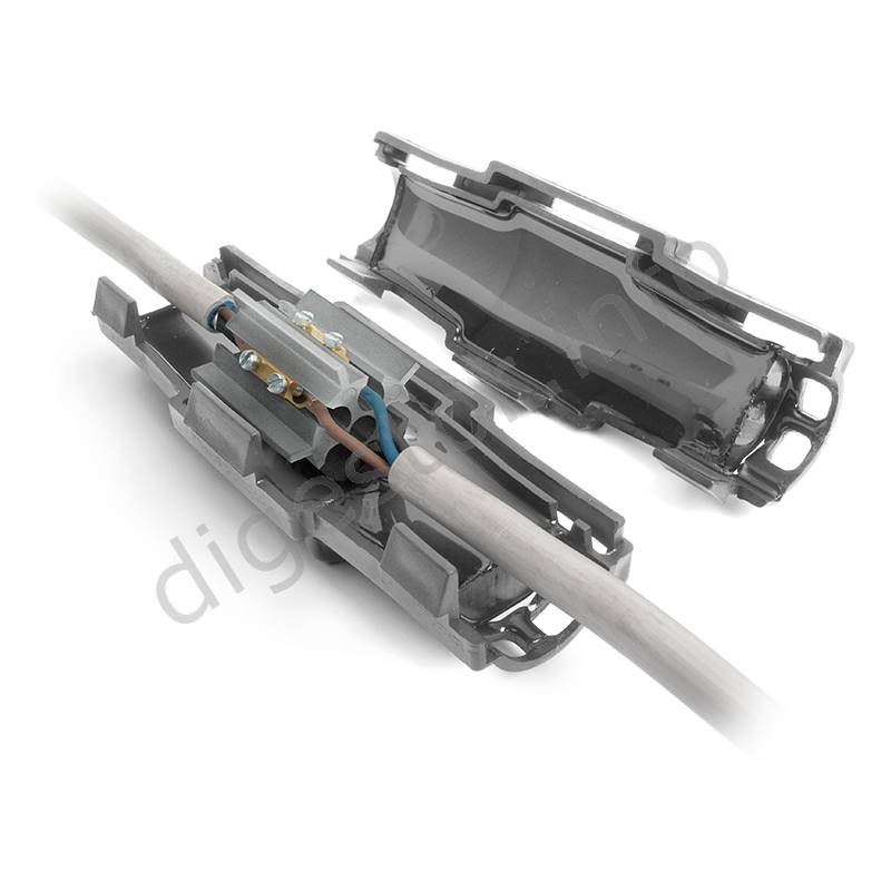 Gelová spojka King Joint L6 so svorkou 5x1,5-6mm2 D20,5mm IPX8 pre káble: 5x1,5mm2, 5x2,5mm2, 5x4,0mm2, 5x6,0mm2. Spojka je priama (nie Y alebo T) Spojka obsahuje gél, svorkovnicu a 2 sťahovacie pásky k poisteniu uzavretia puzdra spojky. Gél zabezpečí vodotesnosť spoja. Ako čítatať Hodnotu IP X8 : X - Predpísaná je len ochrana pred vniknutím vody (ochrana pred nebezpečným dotykom a ochrana pred vniknutím cudzích telies nie je pri danom výrobku predpísaná). 8 - Stupeň ochrany pred vniknutím vody je stanovený na hodnotu 8, čo je trvalé ponorenie. V každom prípade odporúčame, aby bol tento elektrický obvod opatrený Prúdovým chráničom!