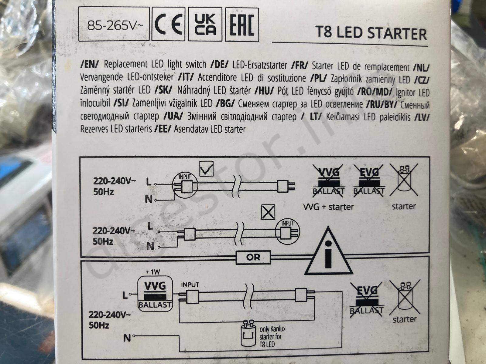 LED Poistka/štartér Knlx k vybraným T8 LED trubiciam, 26069 Použitie: v prípade osadenia LED trubice bezo zmeny zapojenia pôvodného svietidla s tlmivkou a štartérom. Pôvodný štartér sa nahradí týmto štartérom (schéma 3 úplne dole). Ak má pôvodné svietidlo novšiu technológiu - s elektronickým predradníkom, rešpektujte niektorú z prvých 2 schém. Pozn.: LED poistka / štartér nemusí byť kompatibilná/ý s LED trubicami všetkých výrobcov.