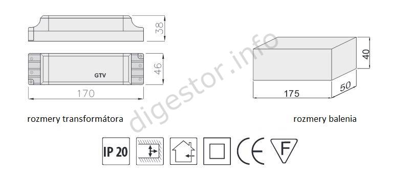 LED transformátor 33W 12Vdc LD-ZASPRO33W-30 (LD-ZAS30W-30M, LD-ZAS30W-30, LD-ZAS30W-30N) IP20 Primárna strana transformátora: 230V 50Hz Sekundárna strana transformátora: 12V DC LED transformátory: - musia byť umiestnené čo najbližšie k svietidlám resp. žiarovkám, aby vplyvom dlhých vodičov neprichádzalo k stratám t.j. k znižovaniu napätia a tým pádom aj k nižšej svietivosti. - musia byť umiestnené tak, aby bol zabezpečený odvod tepla, ktoré generujú - musia byť umiestnené minimálne 50cm od iných elektrospotrebičov Uvedené platí aj napriek tomu, že transformátory spĺňajú normu EMC o elektromagnetickej kompatibilite (nerušia iné spotrebiče a sú odolné voči rušeniu od iných spotrebičov). Installation and connection can be performed only by a qualified electrician. ***Are you a company, institution or trader? Let us to set up Your prices!*** Tel.: +421-903/430803, elmat@elmat.sk Inštaláciu a zapojenie môže vykonávať len kvalifikovaný elektrotechnik. ***Ste Firma, Inštitúcia, alebo Obchodník? Dajte si nastaviť Vaše ceny!*** - +421-903/430803, elmat@elmat.sk