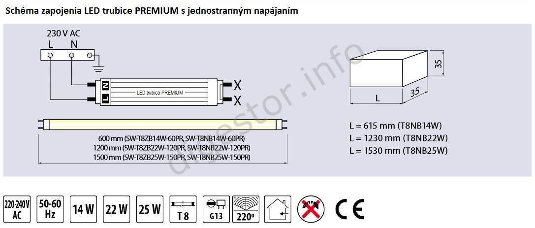 Predchodca bol: Led trubica 60cm 10W T8 G13 NW 270°! 900lm 4000K Neutrálna biela PREMIUM A++ Nástupca je SW-NSZT810W-60N , prípadne GX pozn.Dk: SW-NSZT810W-60 / GXDS305v2 Prémiový rad LED trubíc. Vysoká efektívnosť - pri spotrebe 9/10W svietivosť 1000/900lm ! Efektívnosť znásobuje 270° ! uhol svitu. Veľký svetelný výkon oproti bežným LED trubiciam. Menšie výkony v tejto dĺžke dodávame len na objednávku. Reálne Osvetľujeme Vaše priestory. Cieľom je trvale pomáhať, nie jednorazovo predať. Predchodca bol: SW-NSZT810W-60 Ceny pre investičné projekty sa stanovujú na základe množstva a môžu byť výrazne odlišné. Prices for the investment projects are determined on the base of the business case volume and might be significantly different. Pôvodná skladová karta: Led trubica 60cm 10W T8 G13 *NW*, SW-SZST810W-60, 270°! 900lm 4000K Neutrálna biela PREMIUM A++ Vďaka zväčšenému uhlu svietenia nie sú potrebné Nastaviteľné pätice na trubici (predtým možnosť nasmerovania svetelného toku). Je určená do svietidiel s objímkou G13 bez použitia štartérov, tlmiviek a predradníkov. Svetelný tok: 1000lm Napájacie napätie: 230V IP20 Priemerná životnosť: 15.000h Jednostranné napájanie Inštaláciu zverte do rúk elektrotechnika. Pozn. Priemerná životnosť svetelného zdroja je priemer životností svetelných zdrojov v danej svetelnej sústave (skupine svietidiel a zdrojov). Uvedením priemernej životnosti sa definuje doba, za ktorú skončí životnosť (zlyhá) 50% svetelných zdrojov danej svetelnej sústavy. Installation and connection can be performed only by a qualified electrician. ***Are you a company, institution or trader? Let us to set up Your prices!*** Tel.: +421-903/430803, elmat@elmat.sk Inštaláciu a zapojenie môže vykonávať len kvalifikovaný elektrotechnik. ***Ste Firma, Inštitúcia, alebo Obchodník? Dajte si nastaviť Vaše ceny!*** - +421-903/430803, elmat@elmat.sk