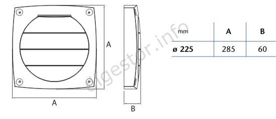 Kód 01560225 Typ Spádová mriežka LHV 225 Vlastnosti: Vonkajšia mriežka s pohyblivými žaluziami pre ventilátor LHV 225. Vonkajšia mriežka pre vyústenie vzduchovodu do exteriéru alebo vzduchovej šachty. Počas odsávania prúd vzduchu nadvihne pohyblivé žaluzie, po skončení odsávania vzduchu sa žaluzie zatvoria vlastnou gravitáciou a eliminujú tak spätný chod pachov, prachu, chladu, alebo tepla do miestnosti.