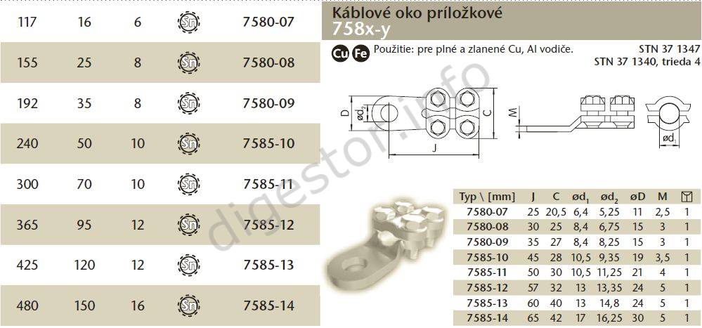 Povrchová úprava cínovaním Použitie: pre plné a zlanené Cu, Al vodiče. STN 37 1347 STN 37 1340, trieda 4 Pre prierezy 16, 25 a 35mm2 sú použité 2 uťahovacie skrutky. Pre prierezy 50, 70, 95, 120 a 150mm2 sú použité 4 uťahovacie skrutky.