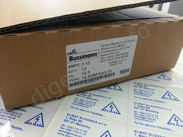 Original Price: 223,30 € without VAT Poistka 15-5OBFNA3-15, 3.15A 15.5kV 254/25.4mm, MOQ=12, Cooper Bussmann Fuse Na sklade 7ks. Cena platí len do vypredania zásob! Fuse Links for Voltage & Auxiliary Transformers Dimensions: Length: 254mm Diameter: 25.4mm Installation and connection can be performed only by a qualified electrician. ***Are you a company, institution or trader? Let us to set up Your prices!*** Tel.: +421-903/430803, elmat@elmat.sk Inštaláciu a zapojenie môže vykonávať len kvalifikovaný elektrotechnik. ***Ste Firma, Inštitúcia, alebo Obchodník? Dajte si nastaviť Vaše ceny!*** - +421-903/430803, elmat@elmat.sk