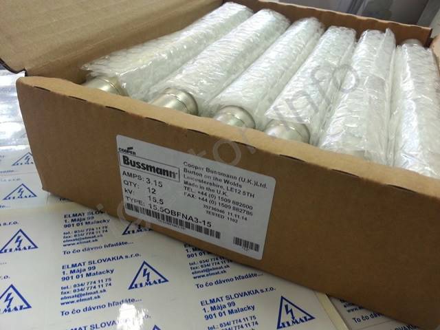 Poistka 15-5OBFNA3-15, 3.15A 15.5kV, MOQ=12, Cooper Bussmann Fuse