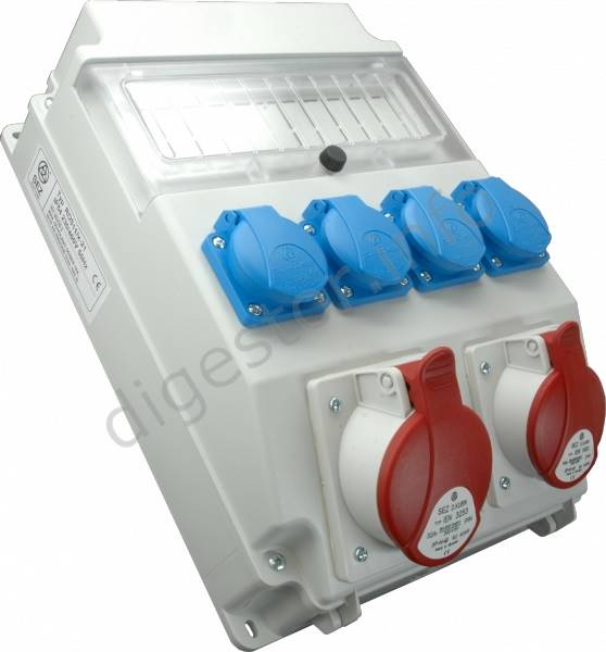 400 V/32 A, 5P (3P+N+PE); 400 V/16 A, 5P (3P+N+PE); 250 V/16 A, 3P (2P+PE)