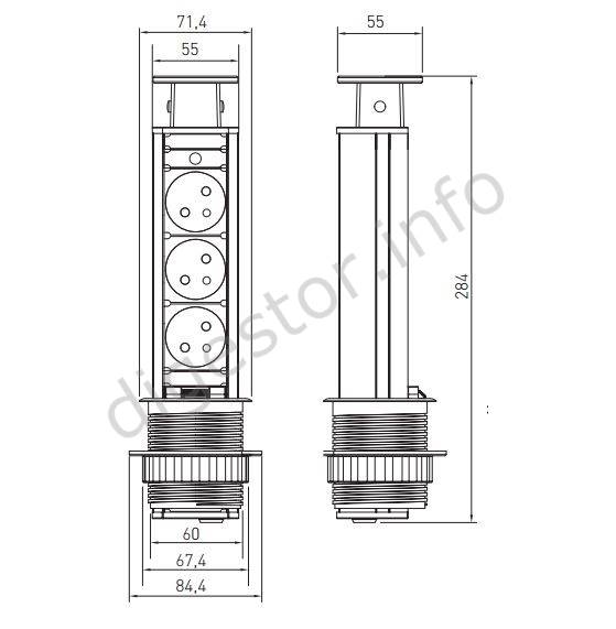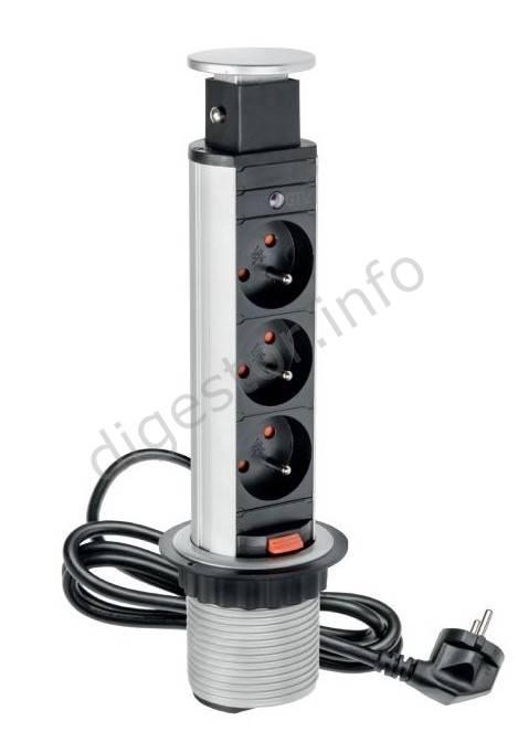 Rozvodka kancelárska - Stĺpik 60mm 3x230V, Strieborná, Vstavná / Výsuvná, AE-BPW3U60-80