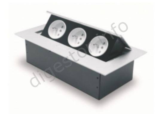 Rozvodka kancelárska - Veko 3x230V zásuvka, Strieborná, Vstavná / Výsuvná, AE-PB03GU-53