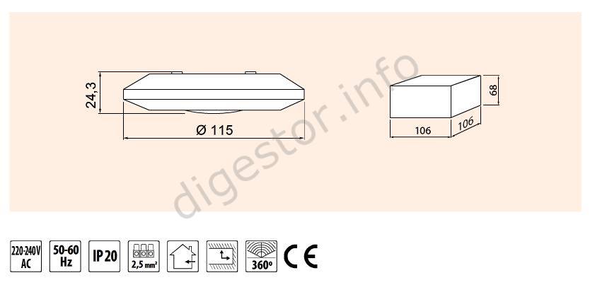 InfraRed Motion sensor CR-3 MINI white, 360°, radius 6m ± 2,2-4m, IP 20 (works with LED)
