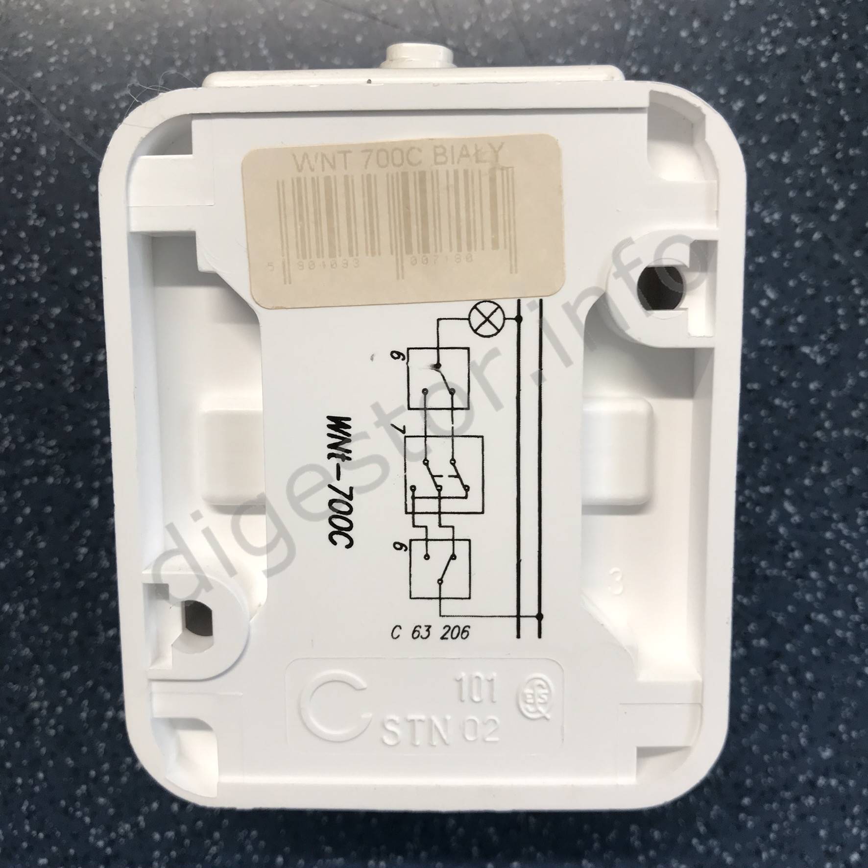 Spínač WNt-700C č.7 krížový prepínač plast IP44 vodotesný biely 00718
