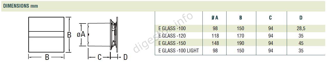 Ventilátor E-120 G, CATA, Standard, Sklenený čelný kryt, 00901000