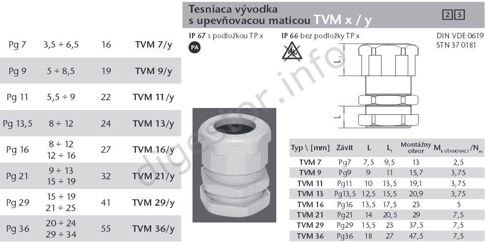 tesniaca vývodka s upevňovacou maticou tvM x / y materiál: polyamid krytie: IP67 s podložkou TP x IP 66 bez podložky TP x tesniaci rozsah: 8-12mm montážny kľuč 24 farba: sivá podložka TP sa objednáva samostatne v prípade záujmu zákazníka DIN VDE 0619 STN 37 0181 Installation and connection can be performed only by a qualified electrician. ***Are you a company, institution or trader? Let us to set up Your prices!*** Tel.: +421-903/430803, elmat@elmat.sk Inštaláciu a zapojenie môže vykonávať len kvalifikovaný elektrotechnik. ***Ste Firma, Inštitúcia, alebo Obchodník? Dajte si nastaviť Vaše ceny!*** - +421-903/430803, elmat@elmat.sk