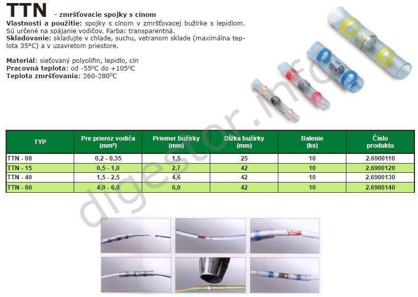 Spojky pre zlanené vodiče - so spájkou a tepelne zmrštiteľnou izoláciou s lepidlom poskytujú: - maximálnu odolnosť namáhania v ťahu - výbornú elektrickú vodivosť spájaných vodičov - vodeodolné tavné lepidlo (farby podľa prierezu) - výbornú tesnosť spoja ako prevenciu korózie - precízne spájkovanie bez lisovacieho náradia Použite teplovzdušnú pištoľ. Podrobný návod v pdf prílohe. Tento výrobok nezasielame kuriérskou službou. Len osobný odber. Ceny pre investičné projekty sa stanovujú na základe množstva a môžu byť výrazne odlišné. Prices for the investment projects are determined on the base of the business case volume and might be significantly different. Inštaláciu a zapojenie môže vykonávať len kvalifikovaný elektrotechnik. Installation and connection can be performed only by a qualified electrician. ***Are you a Company, Institution or Trader? Let us to set up Your prices!*** Tel.: +421-903/430803, elmat@elmat.sk ***Ste Firma, Inštitúcia, alebo Obchodník? Dajte si nastaviť Vaše ceny!*** Tel.: +421-903/430803, elmat@elmat.sk Popisy, technické špecifikácie a preklady © ELMAT SLOVAKIA s.r.o.